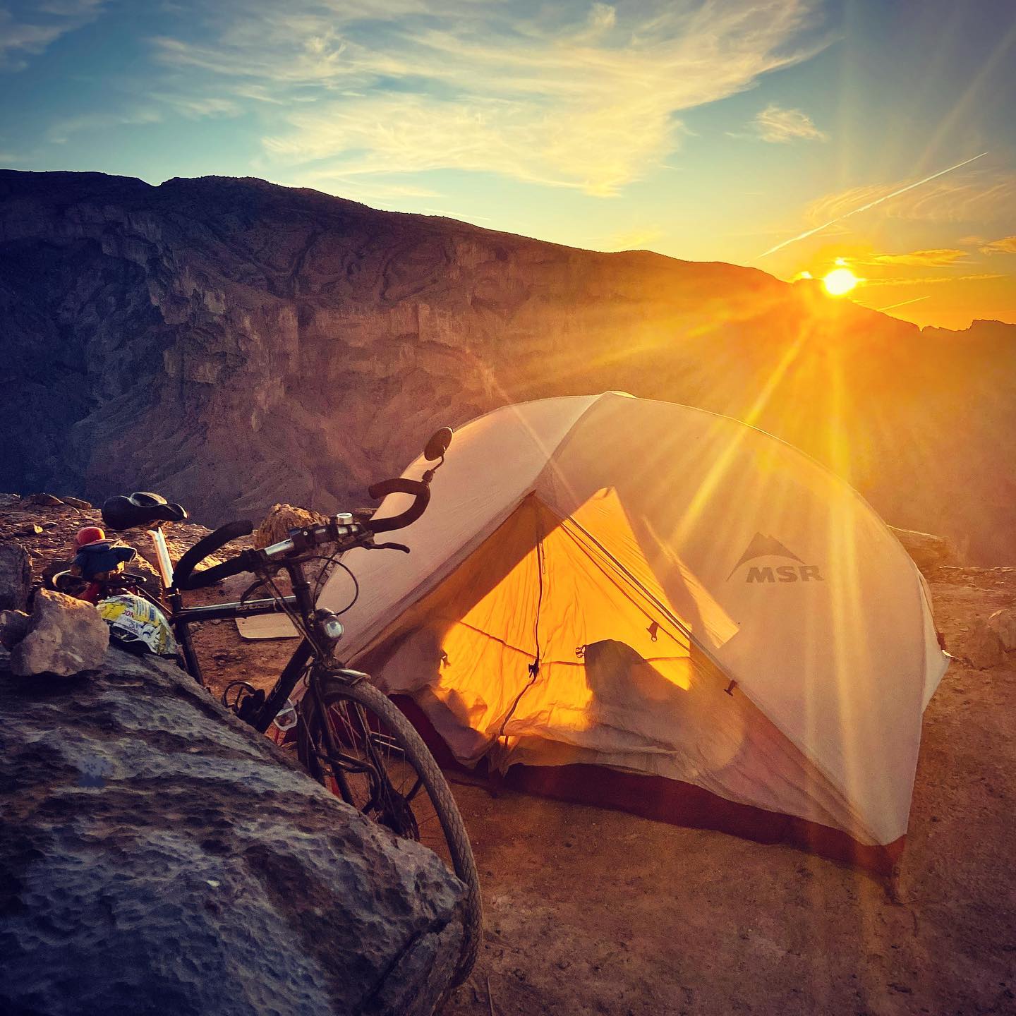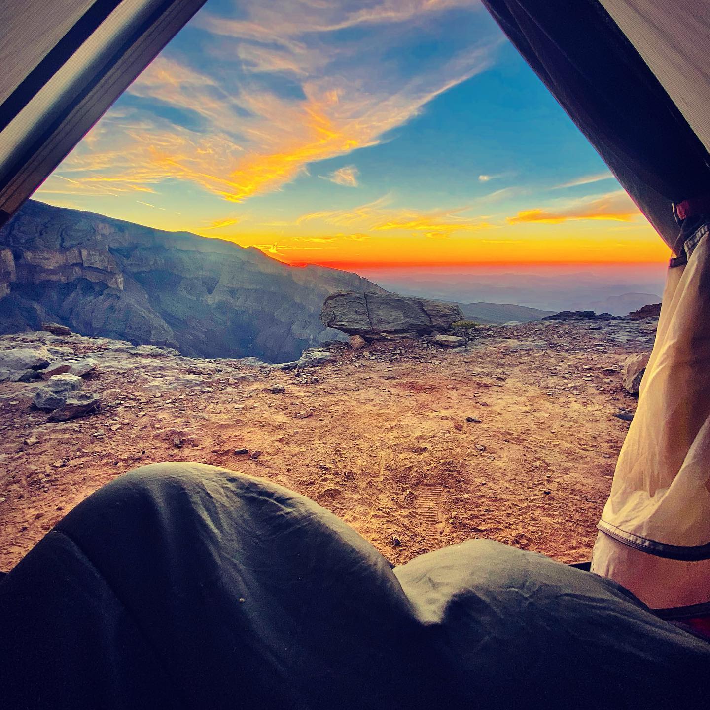 Instead, I pitched up on a patch of dry mud amongst the pebbles of the wadi floor. Later, an Omani in a 4×4 came to investigate the light. Upon finding me, he apologised and swiftly left; he seemed embarrassed. I continue to feel utterly unthreatened by wild camping. I’m Oman.”